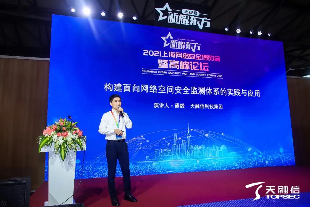 6月28日,天融信科技集团副总裁熊毅出席2021上海网络安全博览会暨高峰论坛——“新挑战——网络空间安全治理分论坛”,并以《构建面向网络空间安全监测体系的实践与应用》为题发表演讲。