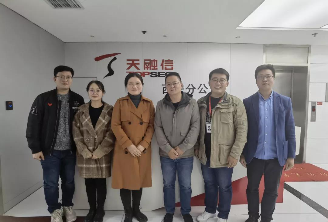 为推进校企合作,促进资源融合,10月21日下午,陕西职业技术学院电子信息工程学院网络与信息安全产业团队负责人薄璐老师一行四人莅临天融信教育及天融信科技西安分公司参观交流,天融信科技教育事业部杨总、申工及天融信教育龚经理热情接待了学院领导一行。
