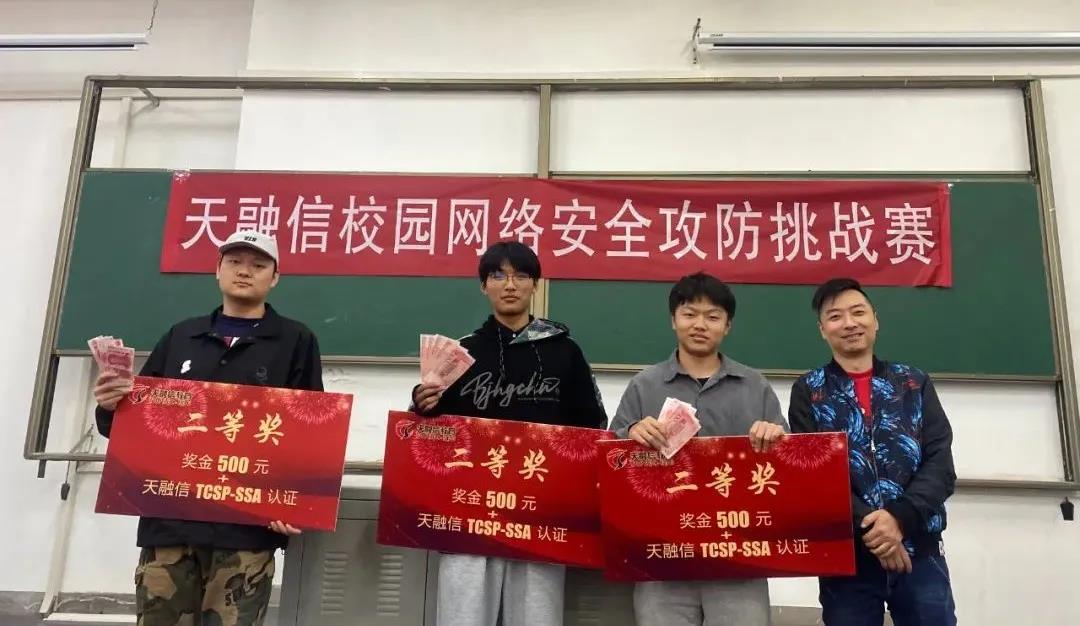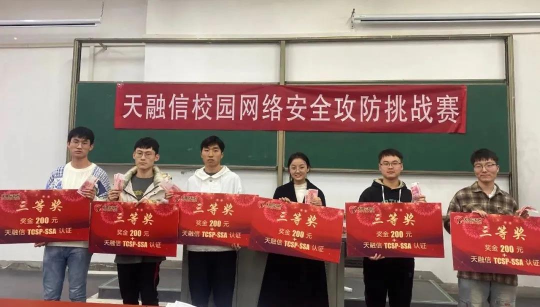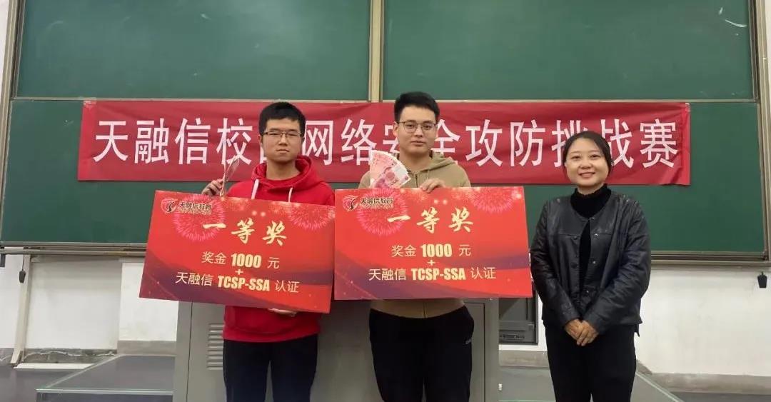 经过两个小时的激烈角逐,竞赛圆满落幕,经评委组老师对比赛结果进行评判,共产生一等奖2名,二等奖3名,三等奖6名。天融信教育程总和相关领导为以上获奖选手颁发了奖金及奖品,以兹鼓励。同时,为所有参赛同学颁发了参与奖,鼓励大家不断提高自身技术实力,积极投身更多网络安全相关赛事与活动。