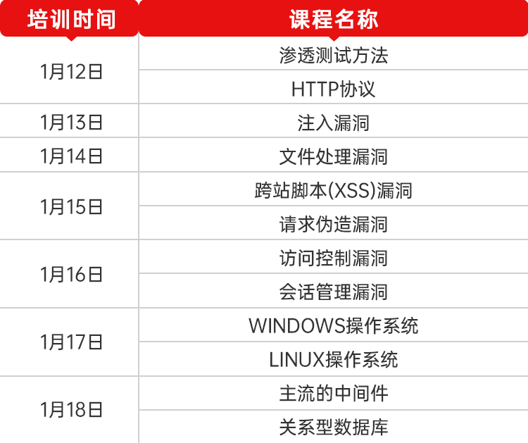 课程内容从多个角度出发,通过客观知识与实际操作相结合的形式,教授学员最新的网络安全技术并跟踪最新的网络安全动态,在真实的网络环境中发现问题和解决问题,锻炼学员实际解决网络安全问题的能力,有效增强学员所在企事业单位网络防御能力。