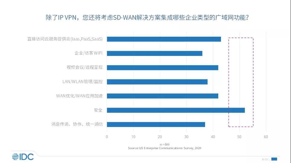 近日,IDC发布《IDC PeerScape:CIO 视角——中国 SD-WAN 安全市场调研》报告。该报告显示安全已经成为企业建设SD-WAN网络的首选集成功能,安全建设必须与企业IT系统建设保持同步才能够有效规避复杂IT系统建设过程中所带来的安全风险。