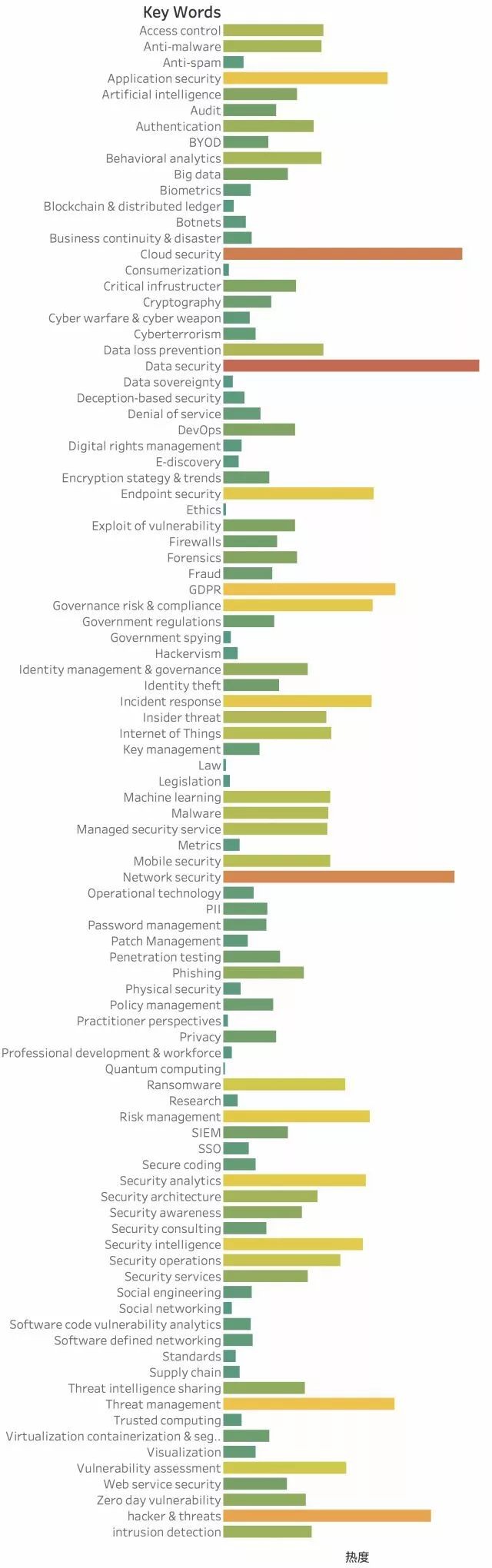 今年有超过600家全球顶尖的网络安全企业参会,我们对这些企业的业务关键词及变化情况进行了数据分析,希望能够通过这样的方法洞察网络安全行业的变化,感知未来发展趋势。2018网络安全热词一览: