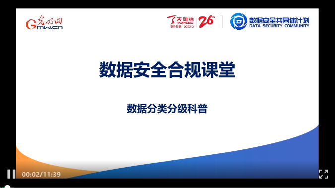 近日,由中国信息通信研究院联合60余家高校、科研院所、企事业单位共同发起的“数据安全共同体计划”光明网专题正式上线,专题设置专家解读、专业分享、合规小课堂等栏目,集中展示“数据安全共同体计划”工作成果。天融信科技集团受邀参与定制专题课堂并进行《数据分类分级科普》。