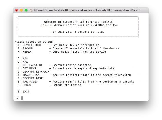 1.通过调用Toolkit-JB命令启动iOS Forensic Toolkit。