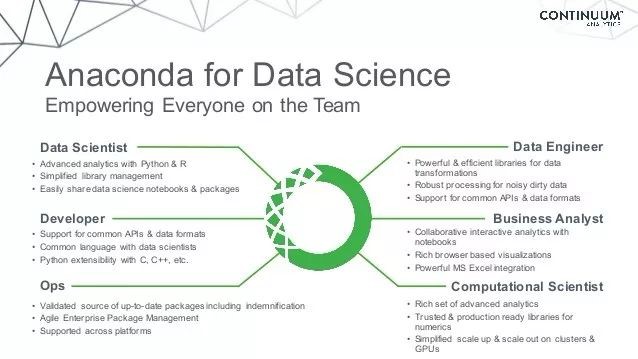 Python 虽好,可总是会遇到各种包管理和 Python 版本问题,特别是 Windows 平台很多包无法正常安装,为了解决这些问题,Anoconda 出现了,Anoconda 包含了一个包管理工具和一个Python管理环境,同时附带了一大批常用数据科学包,也是数据分析的标配。